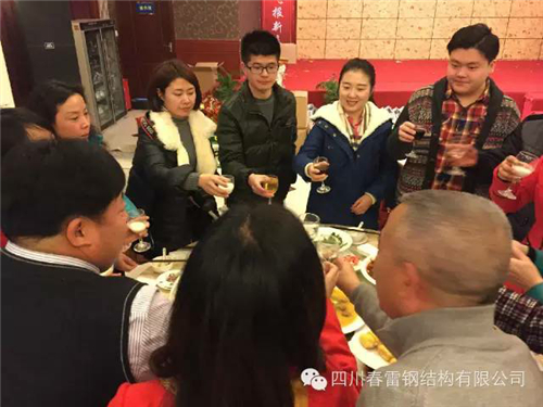 新春的腳步越來(lái)越近,新年的味道越來(lái)越濃,到處洋溢著歡樂(lè)喜慶的節(jié)日氣氛。在2016年春節(jié)到來(lái)前夕,四川春雷鋼結(jié)構(gòu)有限公司在德陽(yáng)市天韻大酒店舉行了2015年度總結(jié)、表彰暨2016年新春團(tuán)拜會(huì)。