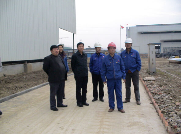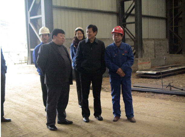 圖2:陳次昌主席(左三)察看春雷鋼構(gòu)二期項(xiàng)目建設(shè)情況